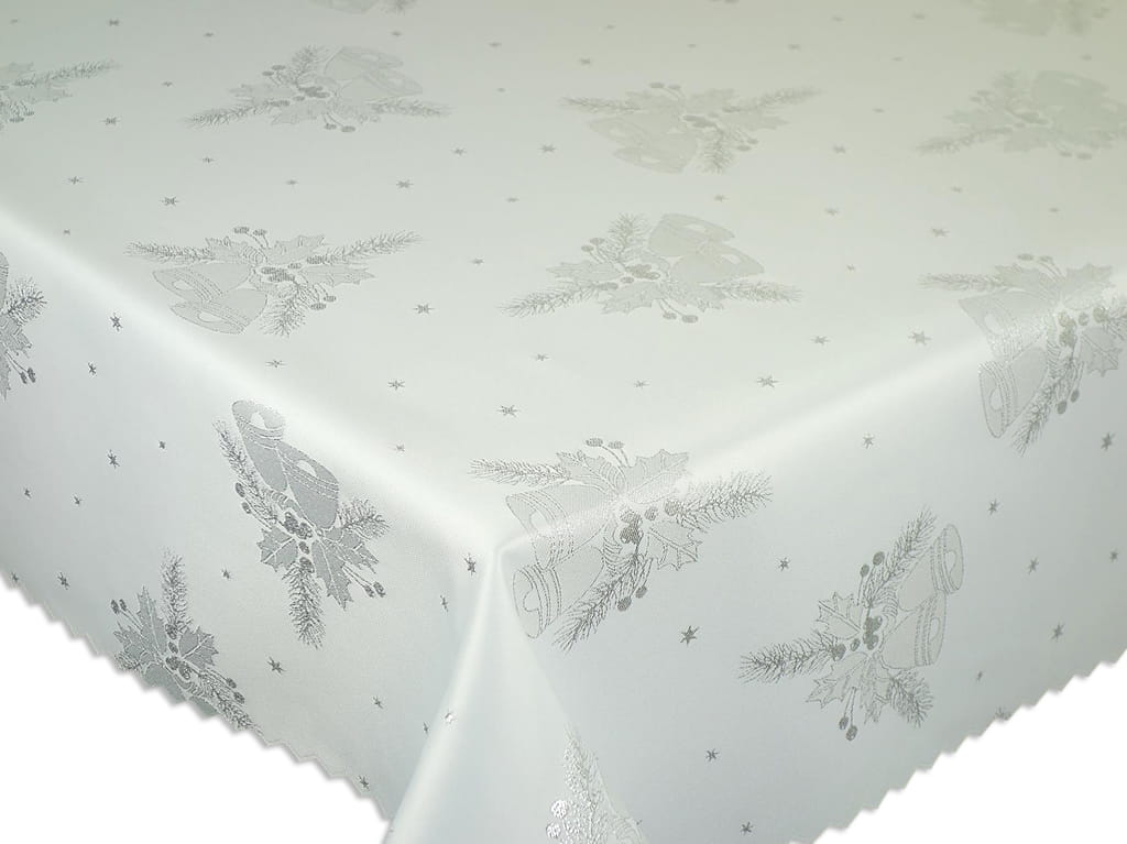Obrus świąteczny z kolekcji Boże Narodzenie wzór Srebrne Dzwonki