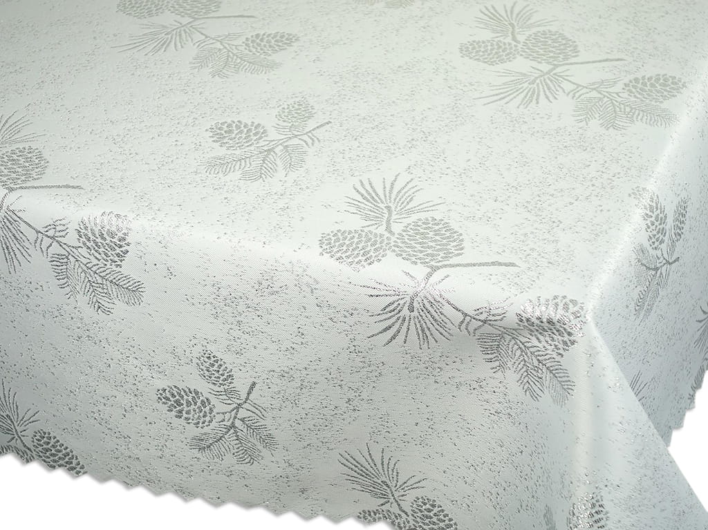 Obrus świąteczny z kolekcji Boże Narodzenie wzór Srebrne Szyszki