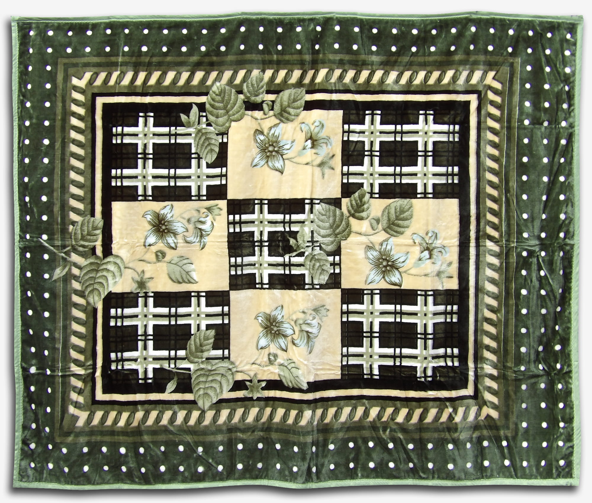 Koc akrylowy ELWAY - 160X200 - patchwork oliwkowy w kwiaty