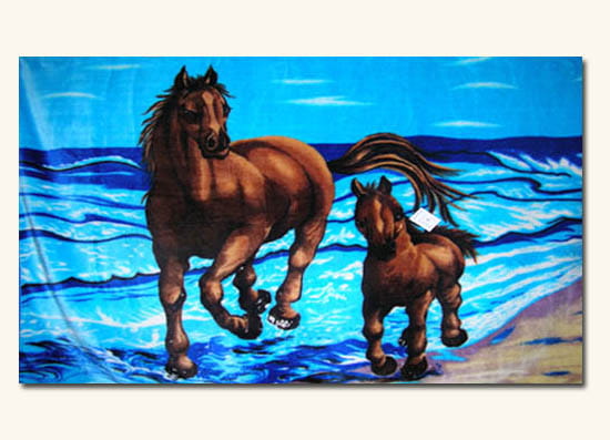 Koc 160X210 - KONIE - Niebieskie tło - ELWAY