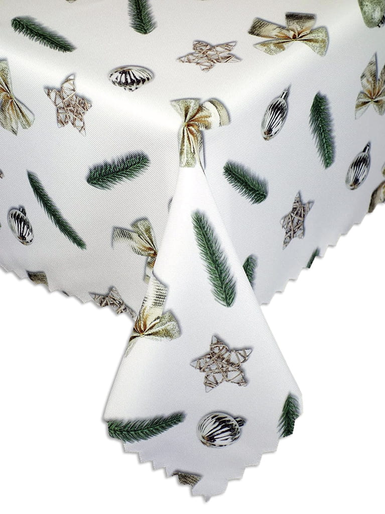 Obrus wykonany z tkaniny plamoodpornej, idealnie sprawdza się na tysiącach stołów w całej Polsce. Tkanina wykorzystana do produkcji obrusów idealnie układa się na stole, nie jest za wiotka, przez co nie spada i nie ześlizguje się ze stołu. Nie jest też za sztywna, dzięki czemu ładnie opada po bokach stołu, dając wspaniały efekt. Wykończenie obrusu to ząbki. Jest to wykończenie uzyskane technika wypalania, dzięki czemu nigdy nie zacznie się pruć ani strzępić.