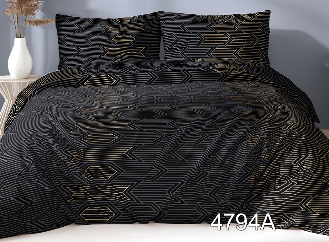Pościel z Satyny Bawełnianej 160x200 – Czarno-Złota Geometria Art Deco – Wzór 4794A