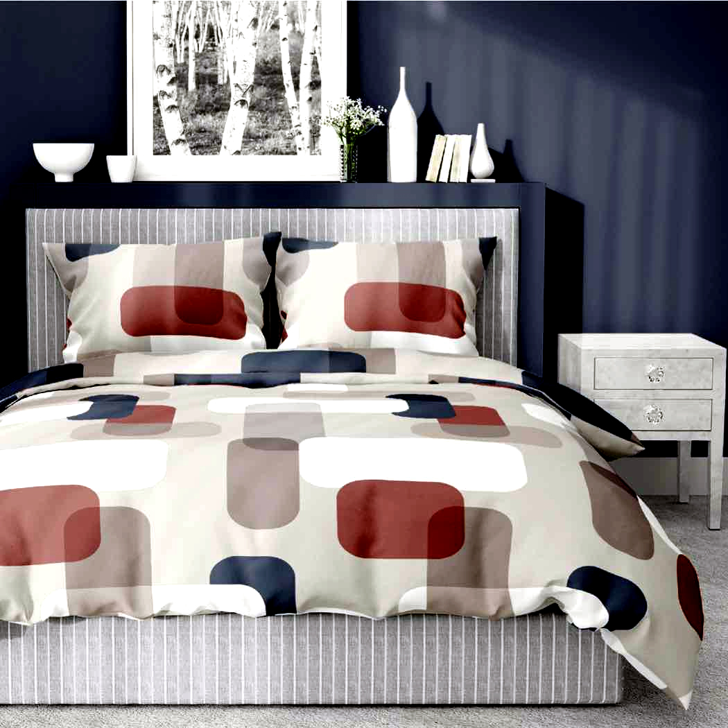 Pościel charakteryzuje się nowoczesnym, wzorem, składającym się z zaokrąglonych prostokątów i owalnych kształtów. Paleta barw wzoru obejmuje stonowane odcienie beżu, różnorodne szarości (od jasnych po ciemniejsze), a także głębokie akcenty brązu i czystej bieli. Te harmonijne kolory doskonale komponują się ze sobą, tworząc spójną i estetyczną całość, która idealnie wpasuje się w nowoczesne i minimalistyczne aranżacje wnętrz. Komplet zawiera poszwę na kołdrę 160x200 cm oraz dwie poszewki na poduszki 70x80 cm, które kontynuują ten sam dynamiczny wzór.