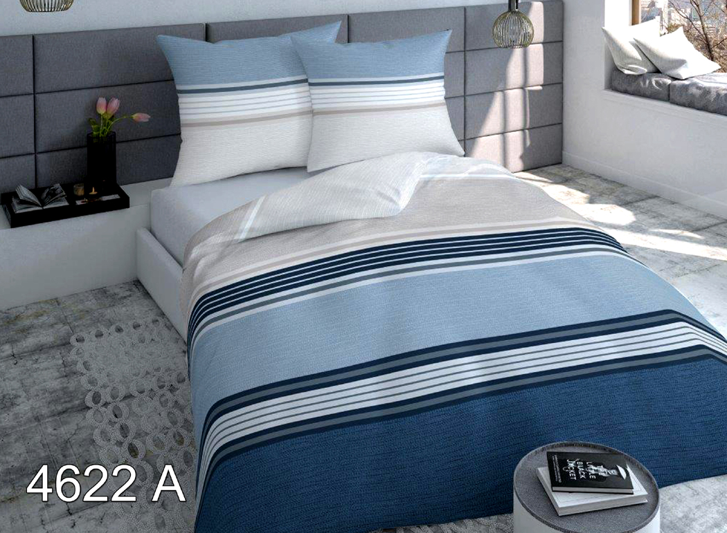 Pościel Satynowa 160x200 wzór 4622A Niebieska w Pasy Geometryczna Nowoczesna
