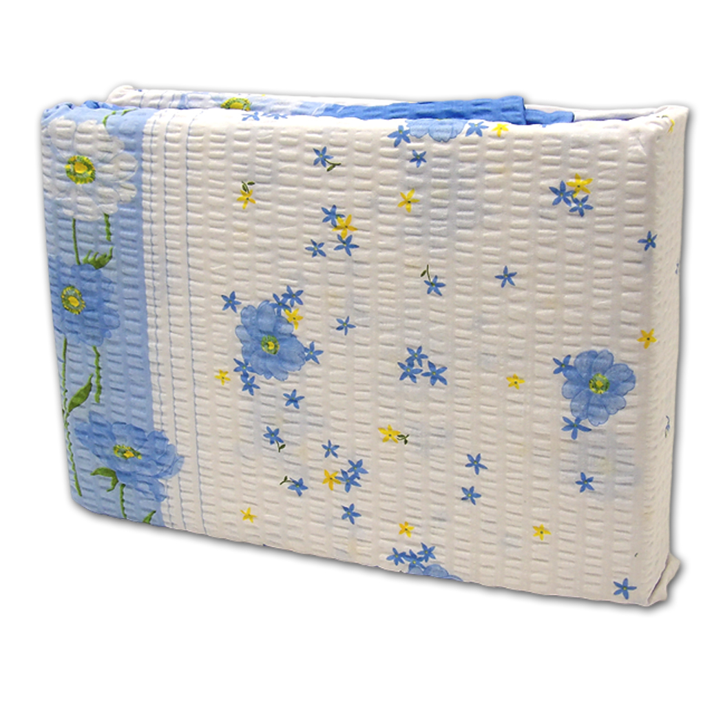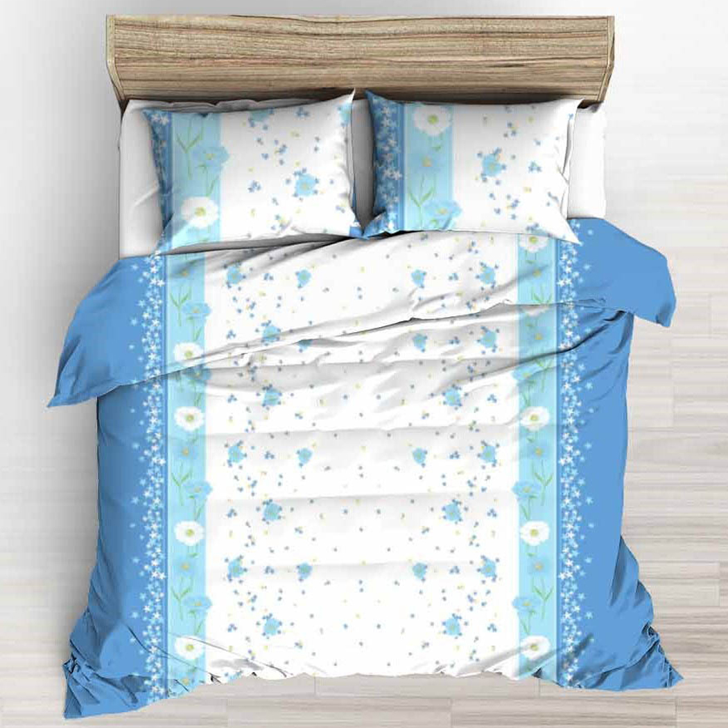 Pościel Kora 160x200 Kwiaty na Biało-Błękitnych Pasach z Poszewkami 70x80 - wzór: 1605