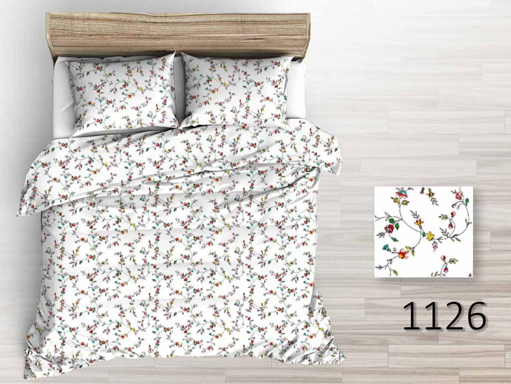 Pościel z Kory 220x200 Bawełna 100% Wzór 1126 Kolorowe Pnącza Biała
