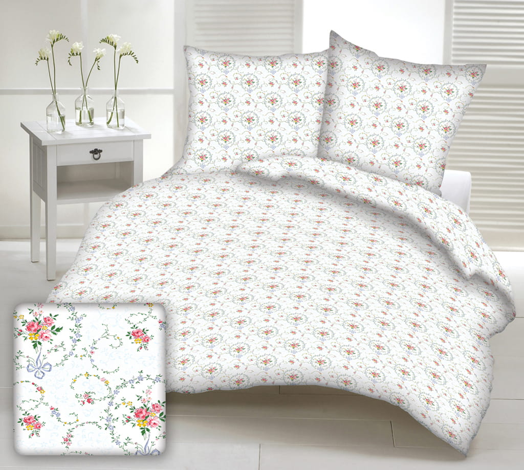 Pościel kora 220X200 - Kwiatowe wianuszki na białemy tle - A861-1