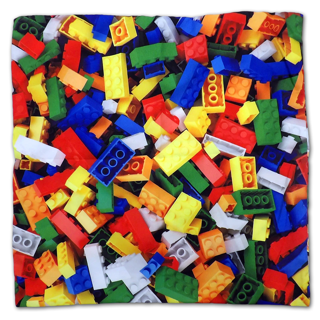Strona B to prawdziwa feeria barw – cała powierzchnia poszewki pokryta jest zbliżeniem na rozsypane, kolorowe klocki. Brak tu napisów czy centralnego elementu, co pozwala skupić się na bogactwie kształtów i odcieni poszczególnych elementów, sprawiając wrażenie, jakby poduszka była wypełniona prawdziwymi klockami.