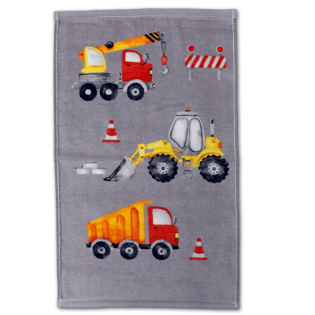 Ręcznik dziecięcy Pojazdy Budowlane 30x50cm Bawełna Szary Dźwig Koparka Wywrotka